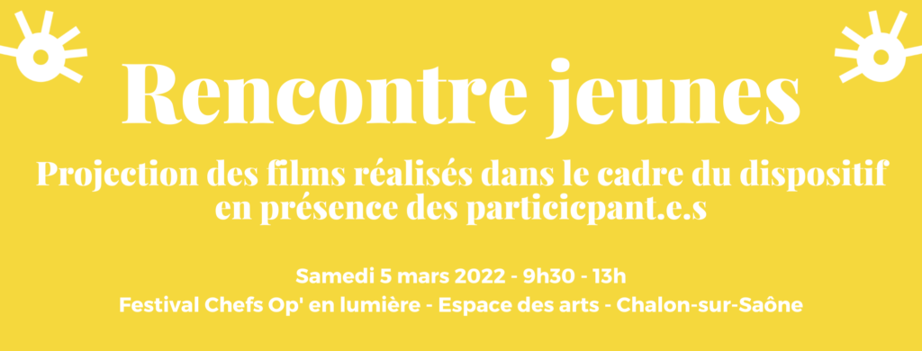Une journée entre participant.es du dispositif venant de l’ensemble de la région, mais aussi les familles, les intervenant.e.s, les curieux, afin de valoriser la richesse , humaine, artistique et technique de chacun.e. Un partage d’expériences qui nourrie une culture cinématographique, mais aussi qui permet la découverte d’un établissement public en immersion au sein de l’Espace des arts, ainsi que de s’immerger dans un festival.